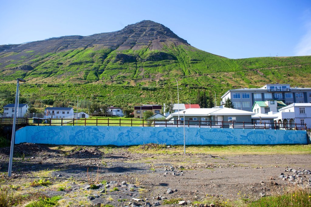 Dagana 18.–21. ágúst tóku sex börn á aldrinum 11–14 ára úr Fjallabyggð þátt í veggmyndasmiðju sem Emma Sanderson stýrði í samstarfi við Barnamenningarsjóð Íslands og Fjallabyggð. Nú er veggmyndin, 36 metra löng, fullgerð og prýðir gamla malarvöllinn á Siglufirði.