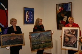 Jóhanna, Ingileif og Gíslína Arngrímsdætur með verkin þrjú.