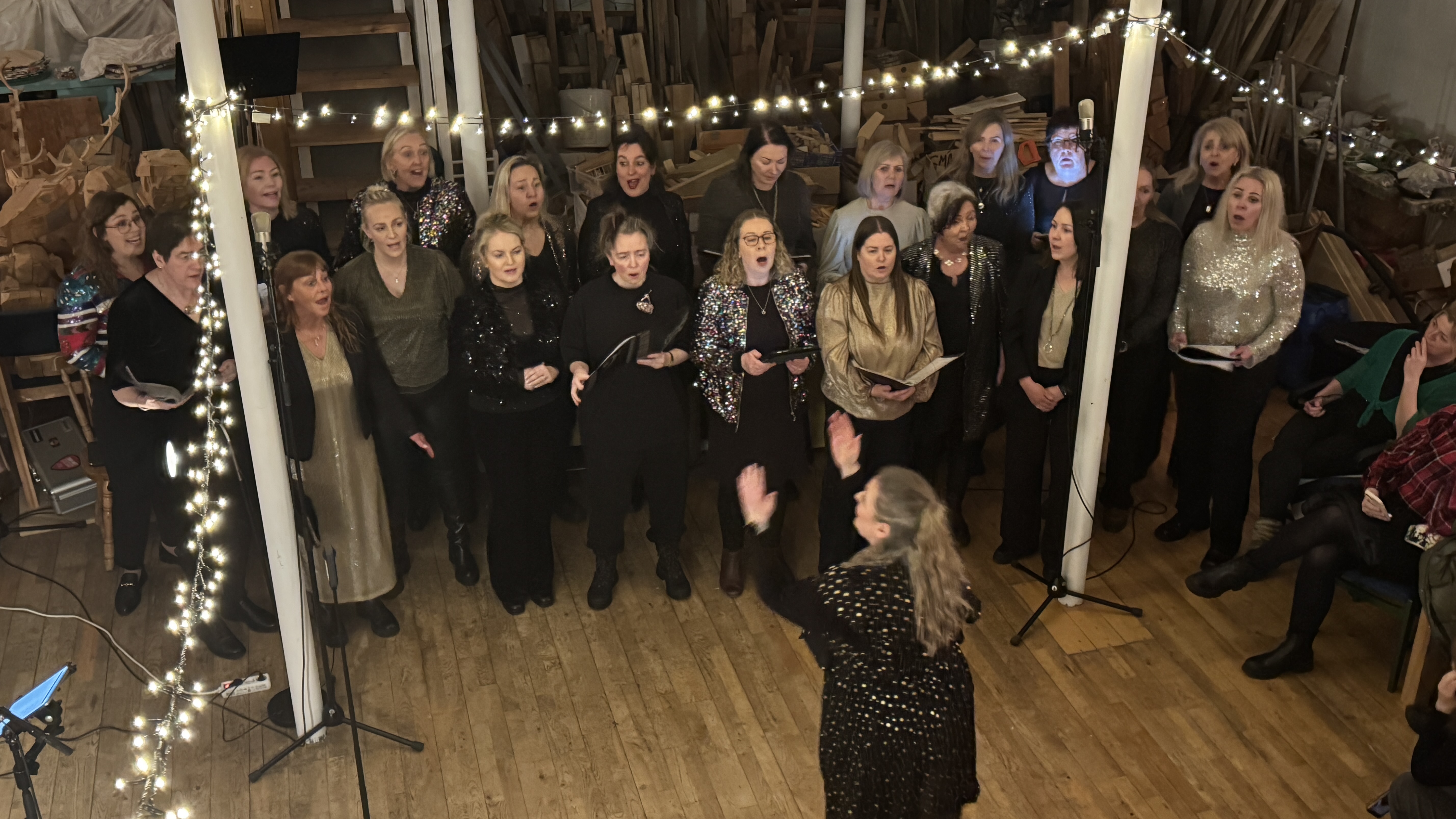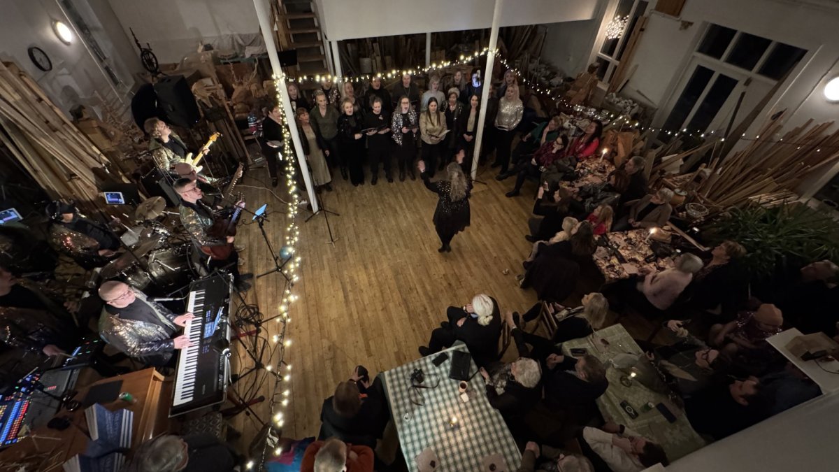 Ástarpungarnir og kvennarkórinn Hytturnar tóku lagið saman.