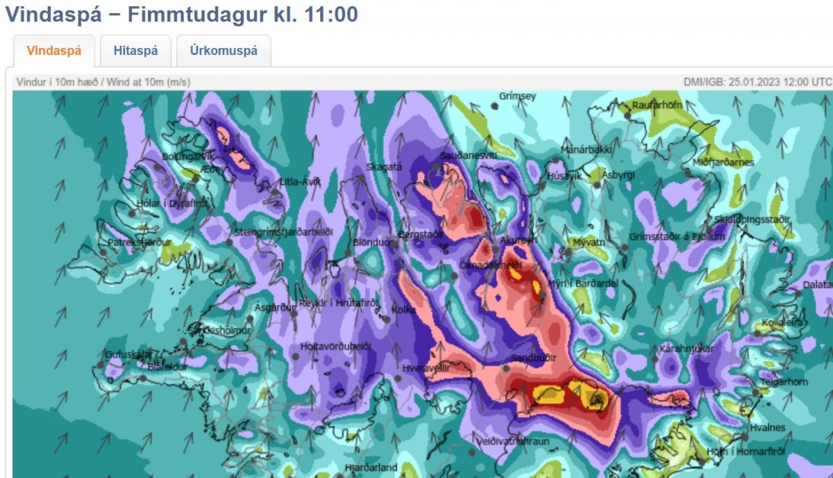 Veðurstofan hefur gefið út gula viðvörun vegna hvassviðris á okkar svæði á morgun, fimmtudaginn 26. janúar, og gildir hún frá kl. 07:00 í fyrramálið og fram á aðra nótt. Samhliða þessu verður hitastig allt að 10 gráður í plús. Íbúar eru beðnir um að huga að lausum munum og hreinsa klaka frá niðurföllum.