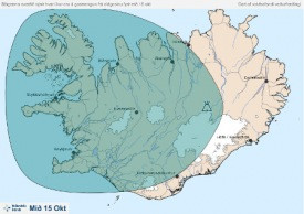 Áætluð loftmengun miðvikudaginn 15. október. (Mynd: www.vedur.is)