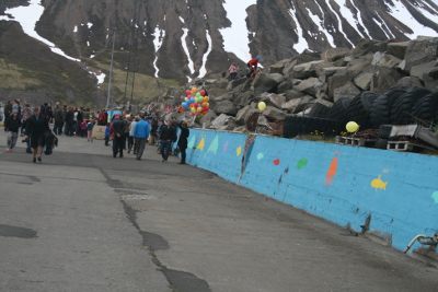 Þorbjörn Sigurðsson yfirhafnarvörður sá um formlega opnun og voru nemendur fengnir til að sleppa blöðrum í loft upp sem tákn um að