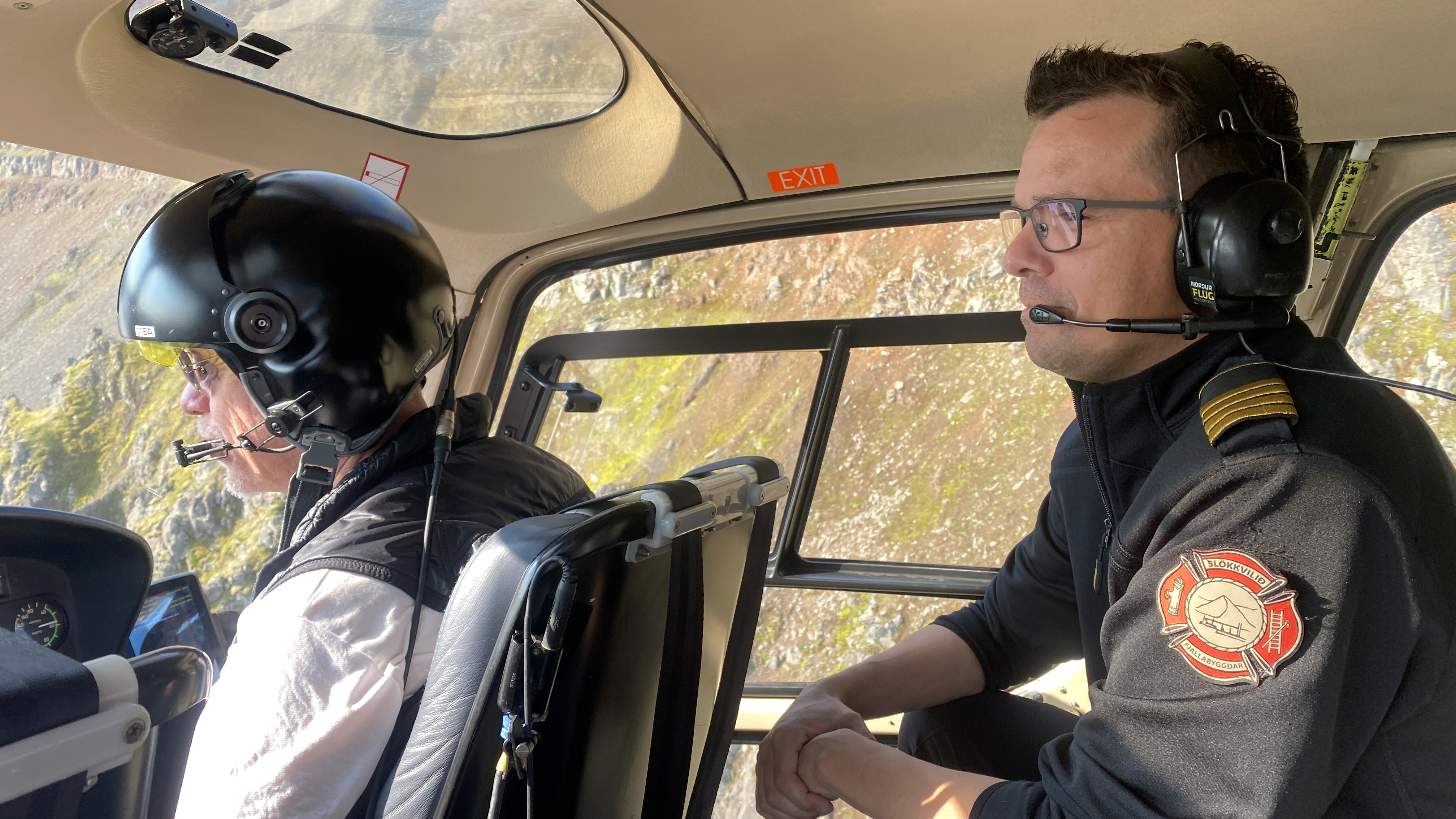 Elíasi Péturssyni, bæjarstjóra og Jóhanni K. Jóhannssyni, slökkviliðsstjóra bauðst að skoða framkvæmdina og mannvirkin úr lofti í gær.