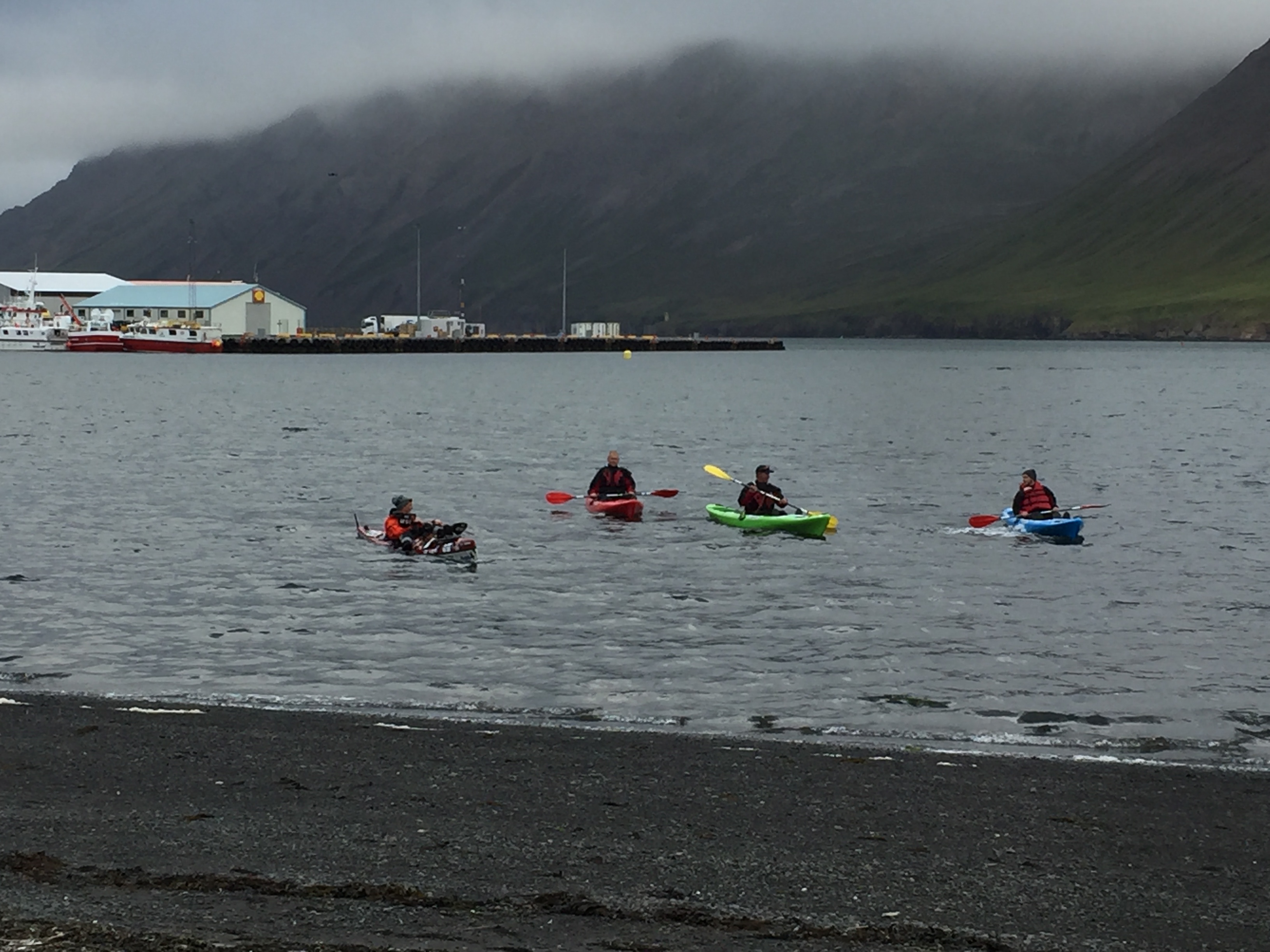 Veiga kom til Siglufjarðar um kl. 18:00 í gær. Björgunarsveitin Strákar tók á móti henni við minni Héðinsfjarðar og Gestur Hansa og fjölskylda úr Top Mountaineering mættu henni við Selvíkurvita og fylgdu henni einnig síðasta spölinn. Fjölmenni var við fjöruna á Vesturtanganum við komu Veigu og hún boðin velkomin. Sigló Hótel bauð Veigu svo gistingu í nótt.