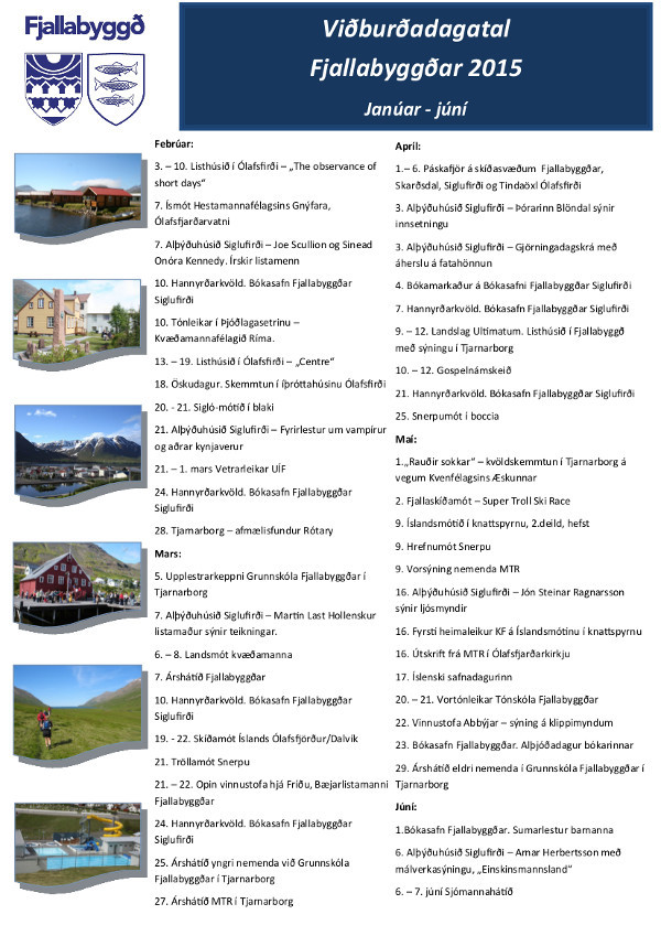 Í byrjun janúar var auglýst á heimasíðu Fjallabyggðar eftir viðburðum í sveitarfélaginu á þessu ári. Búið er að taka saman alla innsenda viðburði í eitt skjal, Viðburðadagatal Fjallabyggðar. Hægt er að nálgast viðburðadagatalið hér á heimasíðunni undir útgefið efni.