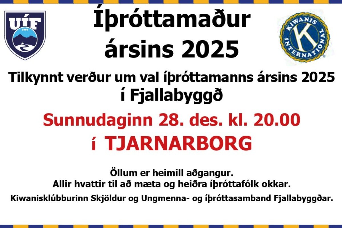Tilkynnt verður um val íþróttamanns ársins 2025 í Fjallabyggð, sunnudaginn 28. desember kl. 20:00.
