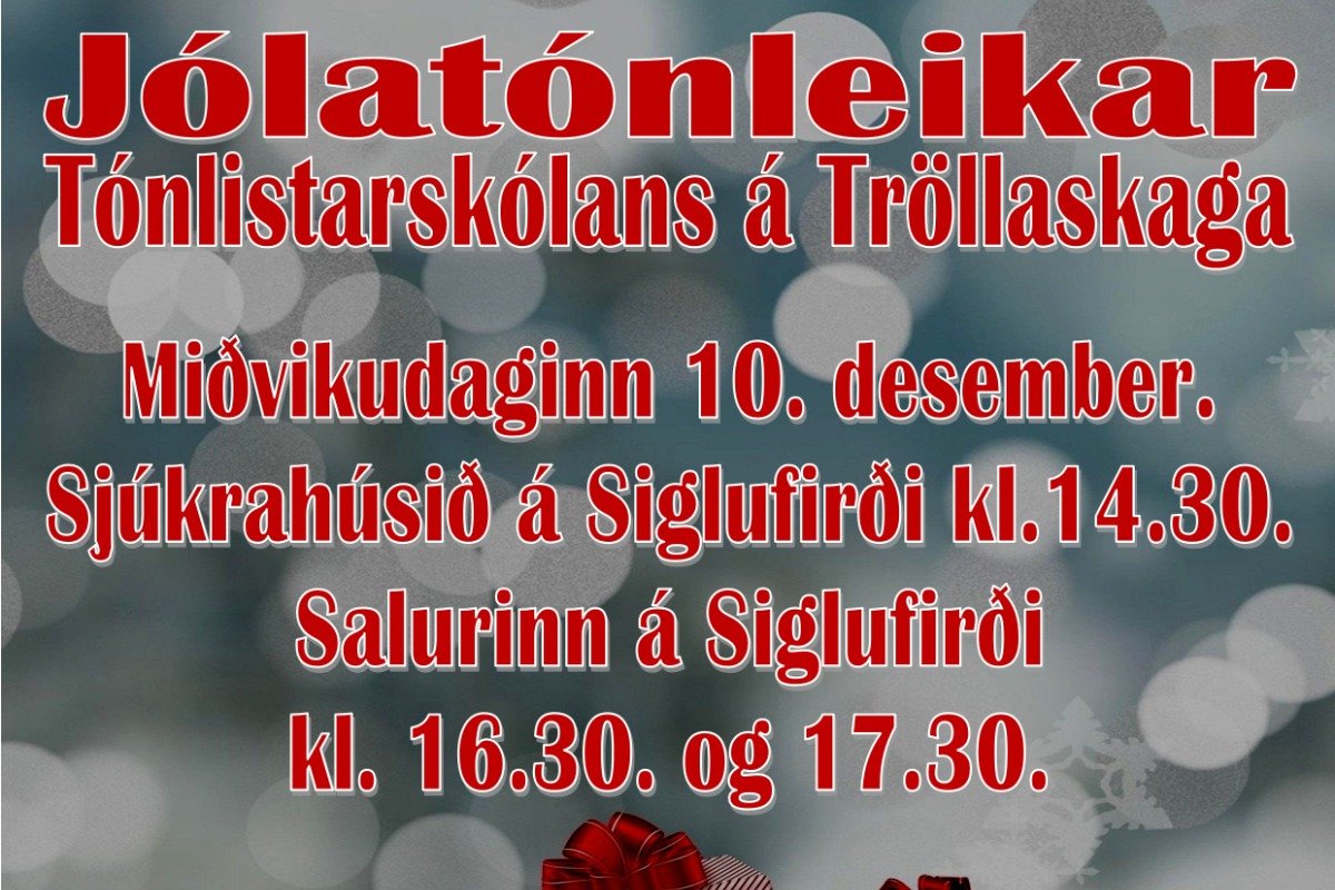 Jólatónleikar Tónlistarskólans á Tröllaskaga verða 10. desember kl 14:30 á Sjúkrahúsi Siglufjarðar og kl. 16:30 í Tónskólanum
